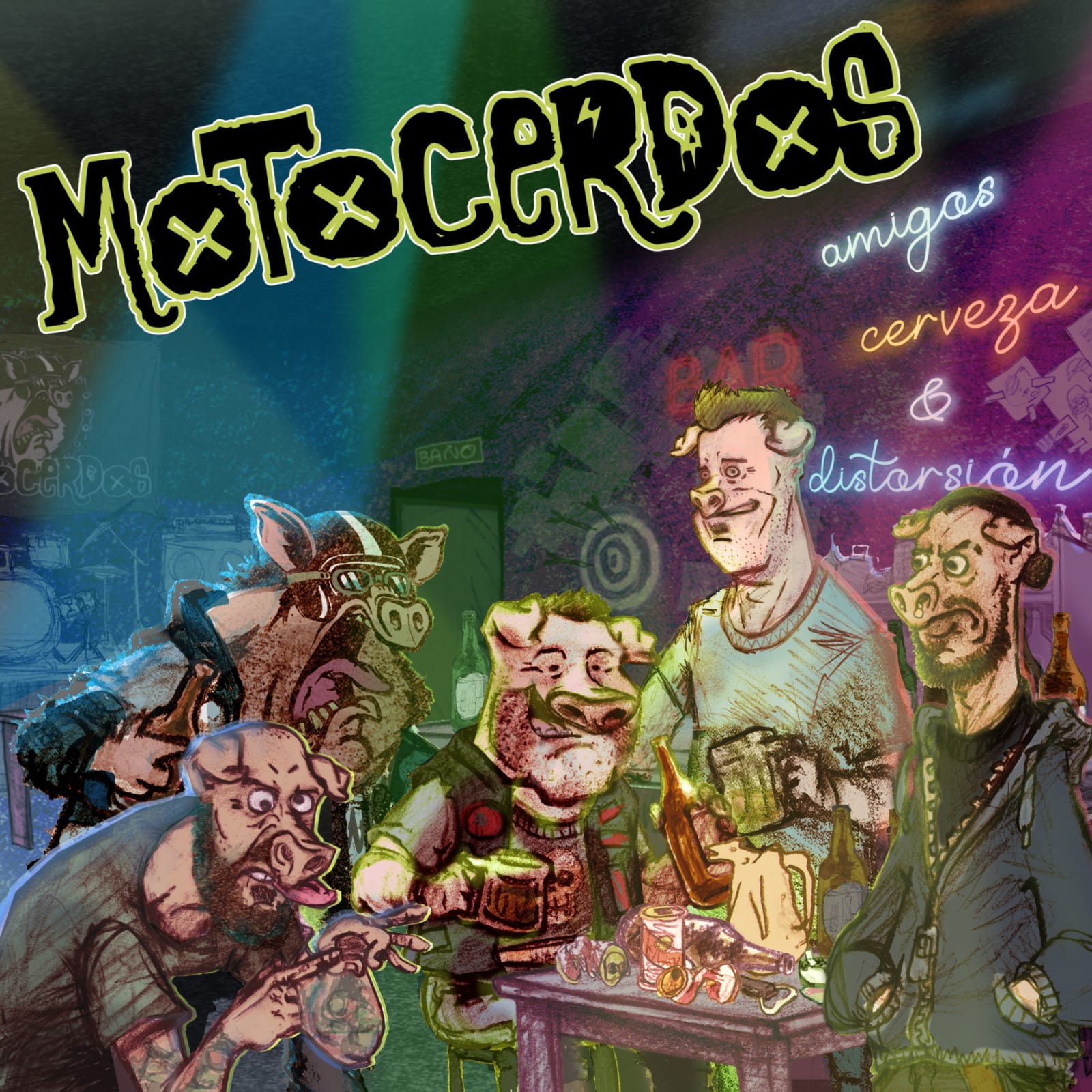 Dos años de trabajo y festejos cumple MOTOCERDOS compartiendo su disco full “Amigos, cerveza y distorsión “. Un disco que tuvo su sencillo y nos adelanto el nombre del mismo y el sonido potente que se nos venia…diez canciones con una gran producción y ejecución de un hard rock sucio.